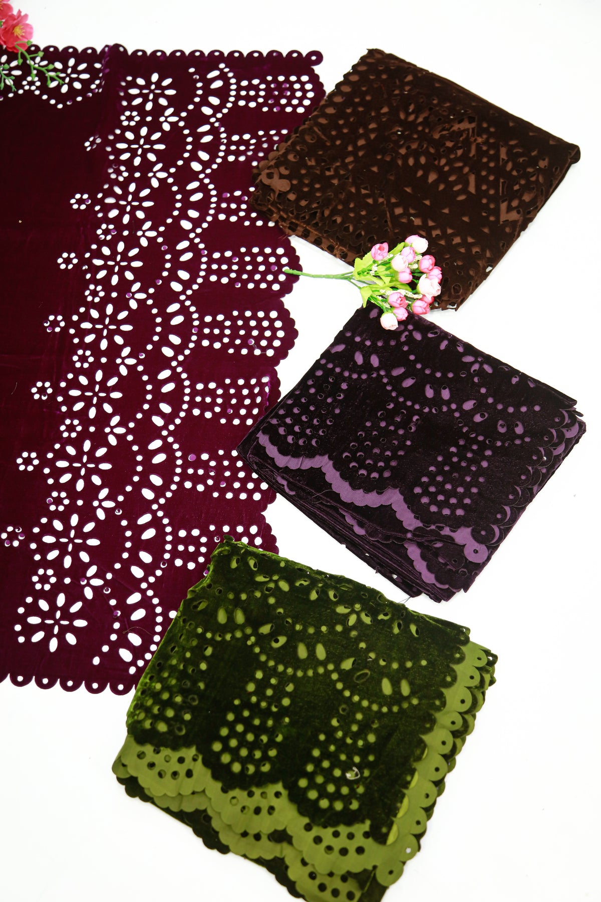 Soft & Stylish Velvet Shawl with Modern Cutwork Design - V9